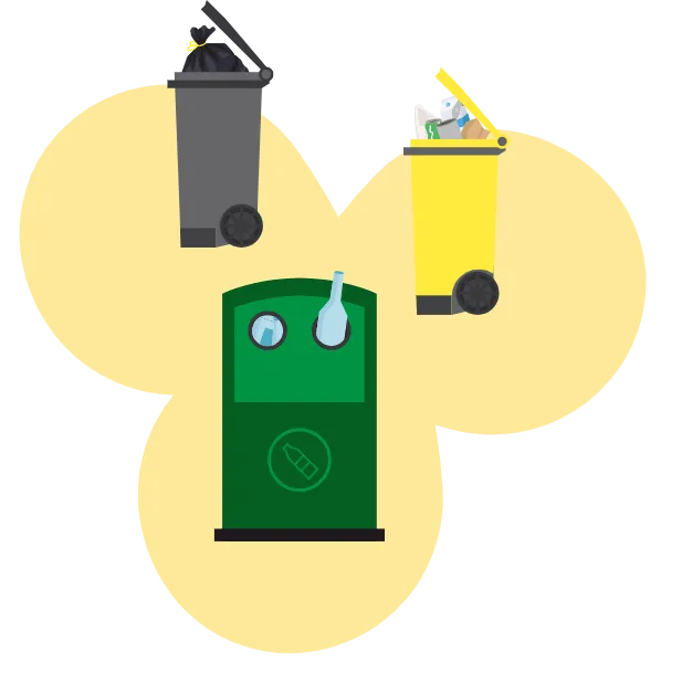 Tous les emballages en verre vidés, sans bouchons, ni couvercles !